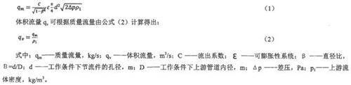 差壓式流量計(jì)是一種應(yīng)用廣泛,用量好多的傳統(tǒng)流量計(jì)。差壓式流量計(jì)(孔板)的工作原理如下:孔板安裝在充滿流體的管線中,孔板的存在使孔板上游側(cè)與下游側(cè)之間產(chǎn)生一個(gè)靜壓差,流量越大,差壓越大,因此可以利用差壓變送器檢測(cè)差壓的大小來衡量流量的大小。這種測(cè)量方法是以流動(dòng)連續(xù)性方程(質(zhì)量守恒定律)和伯努利方程(能量守恒定律)為基礎(chǔ)的。差壓的大小不僅與流量還與其他許多因素有關(guān),如節(jié)流裝置形式,管道內(nèi)流體的物理性質(zhì)(密度,粘度)及流動(dòng)狀況等。質(zhì)量流量qm可根據(jù)公式(1)確定: