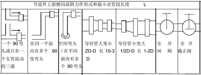 節(jié)流裝置的安裝和適用于下列管段和管件有關:節(jié)流件上游側*一阻力件、*二阻力件,節(jié)流件下右側*一阻力件,從節(jié)流件上游*二阻力件到下游*一阻力件之間的管段以及差壓訊號管路等。