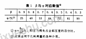 當(dāng)知道直徑比β時,可由表1直接查出孔板不可恢復(fù)壓力損失δp1=ψ△P,免得用公式