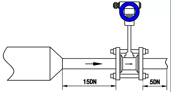 2、調(diào)節(jié)閥盡可能不安裝在液體渦街流量計的上游,而應安裝在液體渦街流量計的下游10D處。