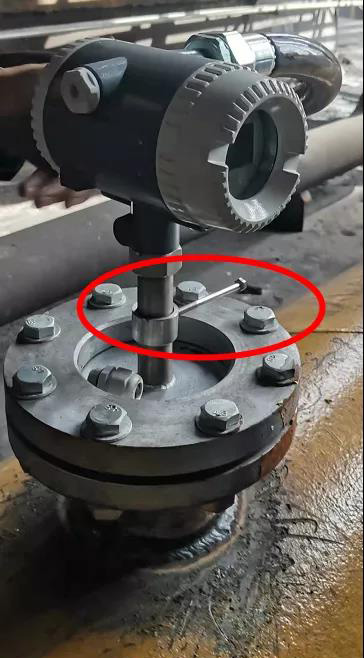 將表插入管道,表上面也有法蘭,有定位方向(表頭下面那個鐵棒是定位方向為出氣方向,)