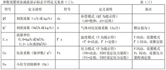 設(shè)置小數(shù)點:直接按 SET 鍵確認(rèn),進入默認(rèn)流量參數(shù)設(shè)置菜單,顯示屏顯示 QP,按數(shù)字↑ 鍵設(shè)置標(biāo)志位。按數(shù)字← 鍵設(shè)置小數(shù)點,按→鍵可以返回菜單選擇項。