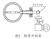 西斯特流量計本身自帶微型冷凝器(見圖2),可以一體化安裝或分體安裝。兩個微型冷凝器與探頭集合為一體,既容易保證正負壓冷凝液面等高(誤差在±1mm內(nèi)),也使安裝變得更加簡單。試驗結(jié)果顯示,這種MT多用途探頭在一體化連接時,蒸汽通過微型冷凝器后進入差壓變送器膜盒時的溫度不會超過室溫,即使蒸汽溫度高達550℃。
