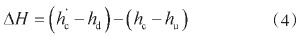 式中,ΔH為增加的有效功,kJ/kg;hc為風(fēng)機(jī)前有節(jié)流孔板時(shí),氣體等熵壓縮至出口壓力pc對(duì)應(yīng)的焓值,kJ/kg;hc為風(fēng)機(jī)前無(wú)節(jié)流孔板時(shí),氣體等熵壓縮至出氣壓力;pc為對(duì)應(yīng)的焓值,kJ/kg;pc為風(fēng)機(jī)出口壓力,Pa。