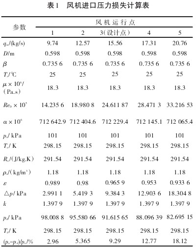 由于進(jìn)氣壓力不大,流體可按理想氣體處理,即風(fēng)機(jī)進(jìn)氣溫度可認(rèn)為不變,但進(jìn)口孔板節(jié)流對(duì)風(fēng)機(jī)進(jìn)口壓力的影響不容忽略,因此,在風(fēng)機(jī)設(shè)計(jì)時(shí)應(yīng)予以高度注意。