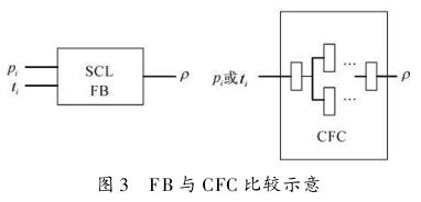 對(duì)于PCS7控制系統(tǒng),可自定義功能塊FB,在FB中通過文本化的高級(jí)編程語言編寫應(yīng)用程序,通過調(diào)用該功能塊來實(shí)現(xiàn)密度計(jì)算。由于正常使用時(shí),自定義功能塊編譯下載過程中系統(tǒng)會(huì)提示停止CPU,不利于安全生產(chǎn),因此對(duì)于重要裝置建議在CFC(Continuous Function Chart)中編寫程序,可以在線下載。與FB不同,CFC采用各種運(yùn)算功能塊搭建而成,其優(yōu)點(diǎn)是直觀、明了,缺點(diǎn)是功能塊多,搭建繁瑣。在CFC中編寫程序,可以在保證蒸汽計(jì)量精度的情況下進(jìn)一步簡(jiǎn)化程序:工藝要縮小蒸汽變化的范圍;盡量以壓力或溫度中的一個(gè)影響較大的參數(shù)作為計(jì)算密度函數(shù)中的變量。FB與CFC比較示意如圖3所示。