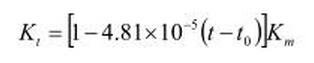 渦街流量計(jì)及其旋渦發(fā)生體一般都為金屬材料制作。金屬固體在高溫下具有熱膨脹的特性。當(dāng)溫度變化較大時(shí),發(fā)生體的柱體寬度和流量計(jì)的本體通徑將隨之變化,這將引起測(cè)量誤差。K系數(shù)可用下式進(jìn)行修正。