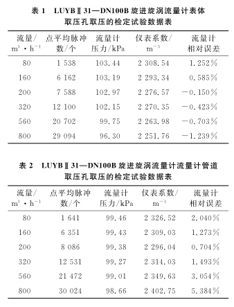 甲烷計(jì)量表檢定過(guò)程中使用的取壓孔在表體的下部或側(cè)部。為了弄清楚取壓方式對(duì)流量計(jì)檢定準(zhǔn)確度的影響,分別在流量計(jì)表體取壓孔取壓和管道取壓孔取壓兩種取壓方式下進(jìn)行了流量計(jì)檢定試驗(yàn)。